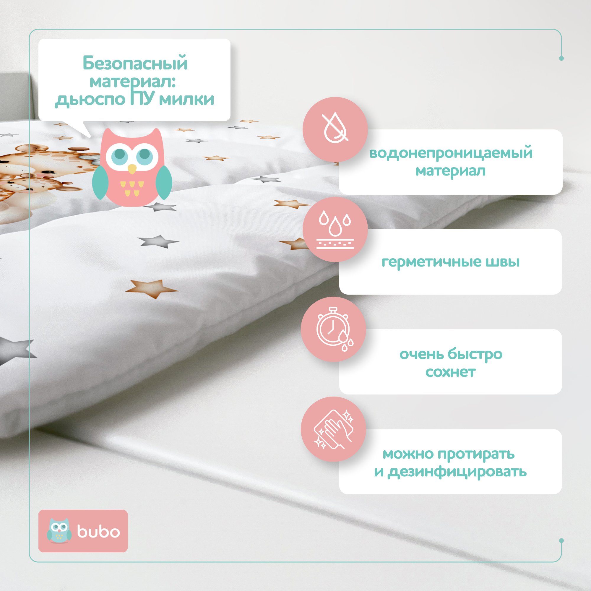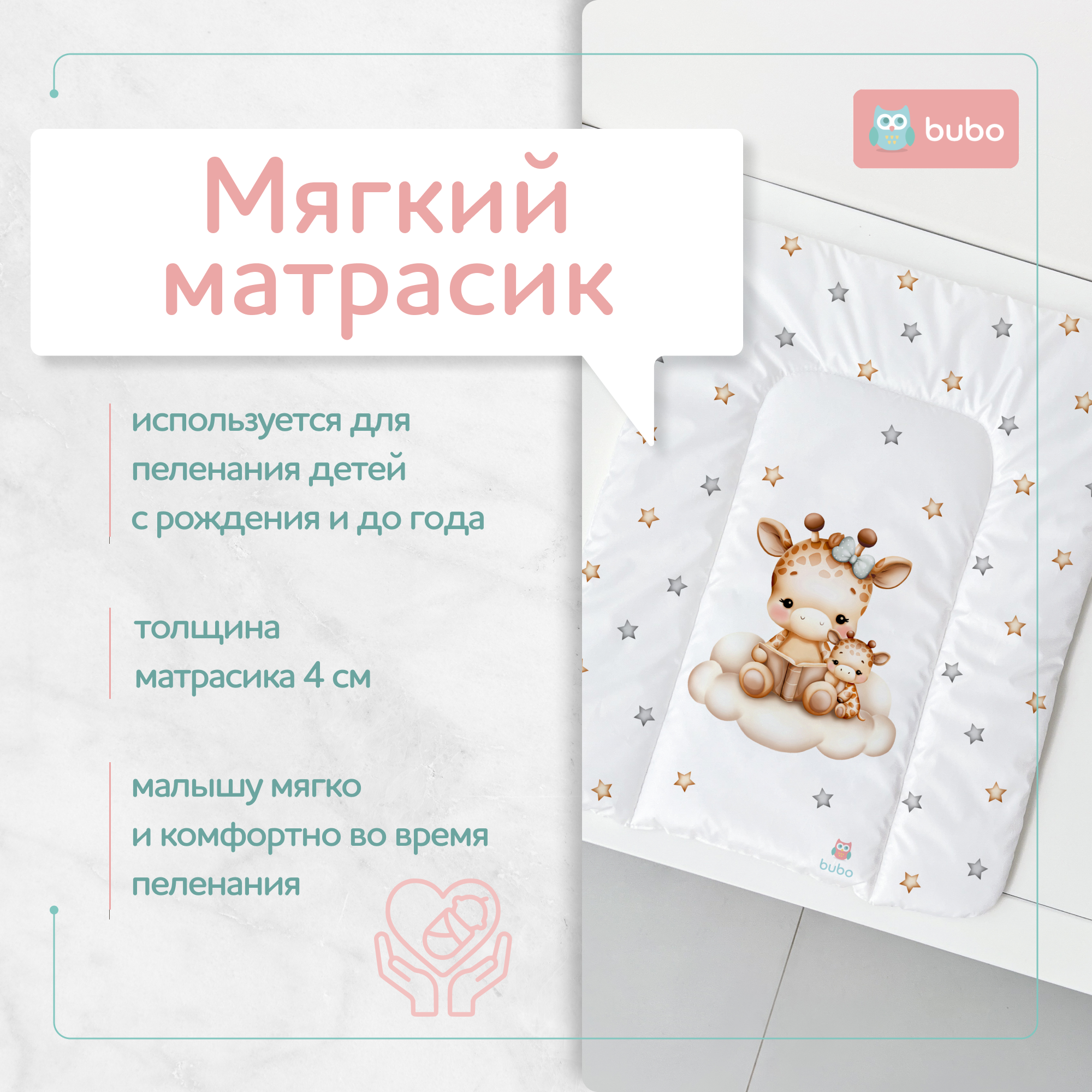 BUBO BABY "DRY MATT" - это не просто матрас для пеленания, это настоящий помощник для всей семьи. Он удобен в использовании, безопасен для ребенка и легок в уходе. Покупайте сейчас и наслаждайтесь комфортом и безопасностью вместе с BUBO BABY!