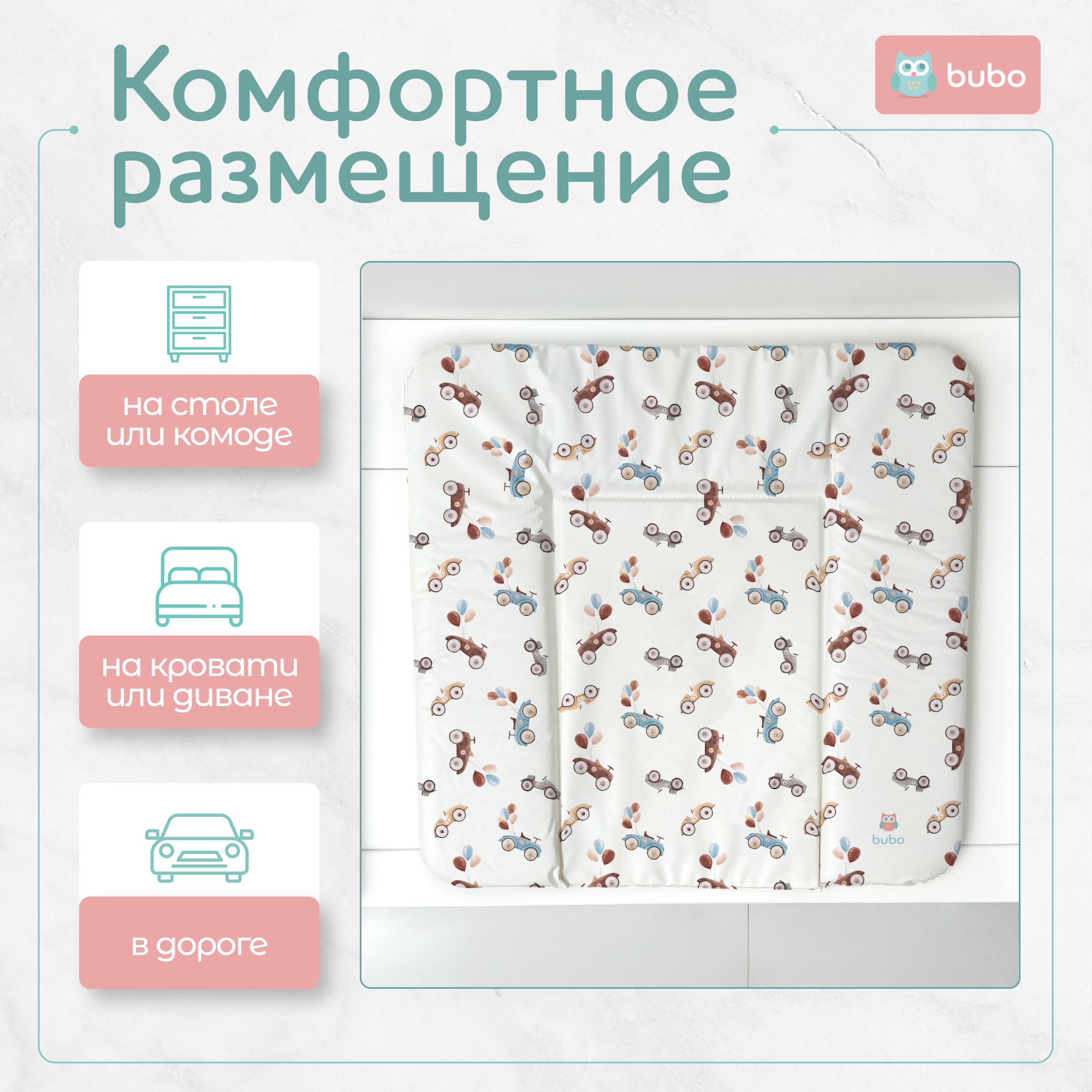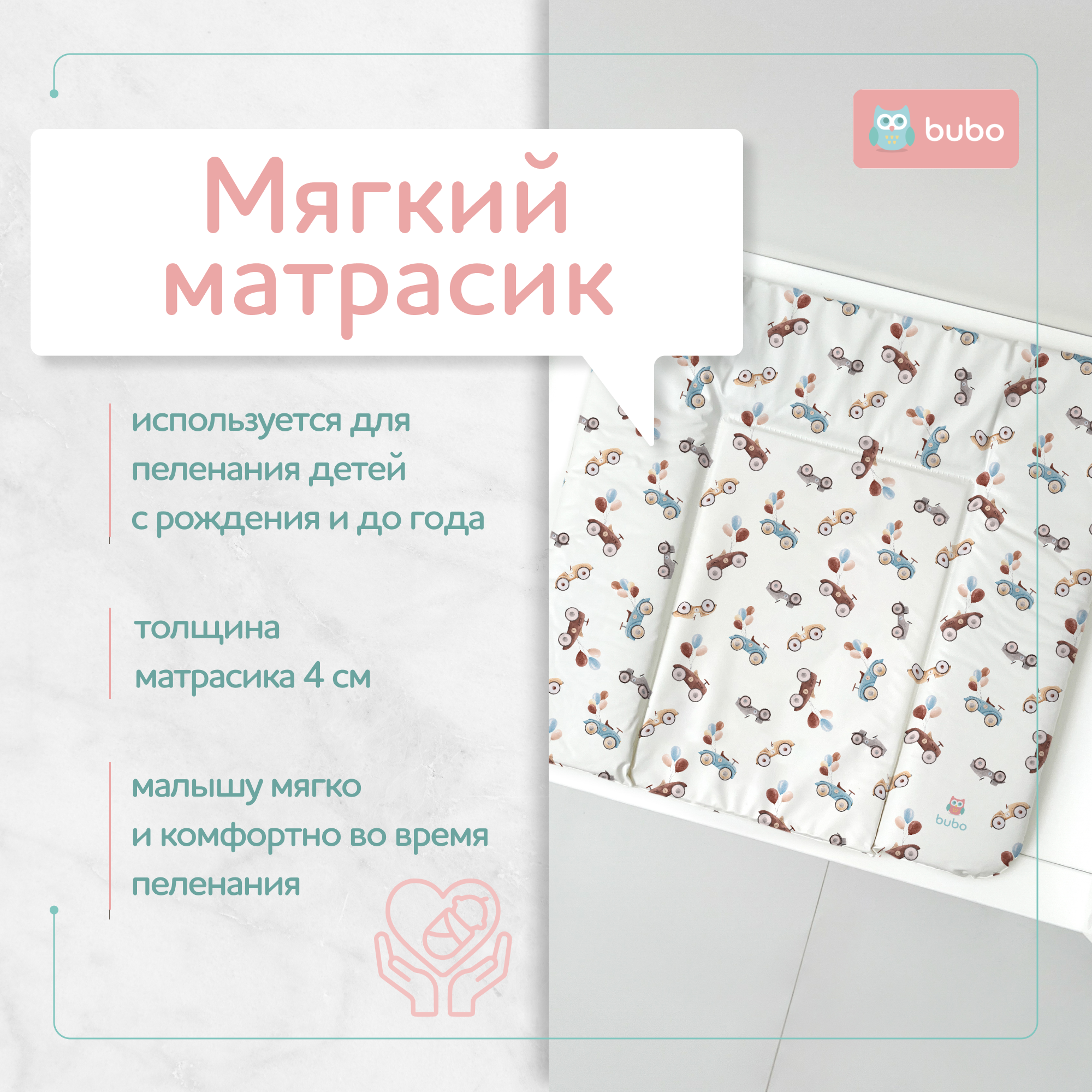 Матрас для пеленания BUBO BABY SKY 75x72 см - идеальное решение для комфортного и безопасного ухода за вашим малышом.