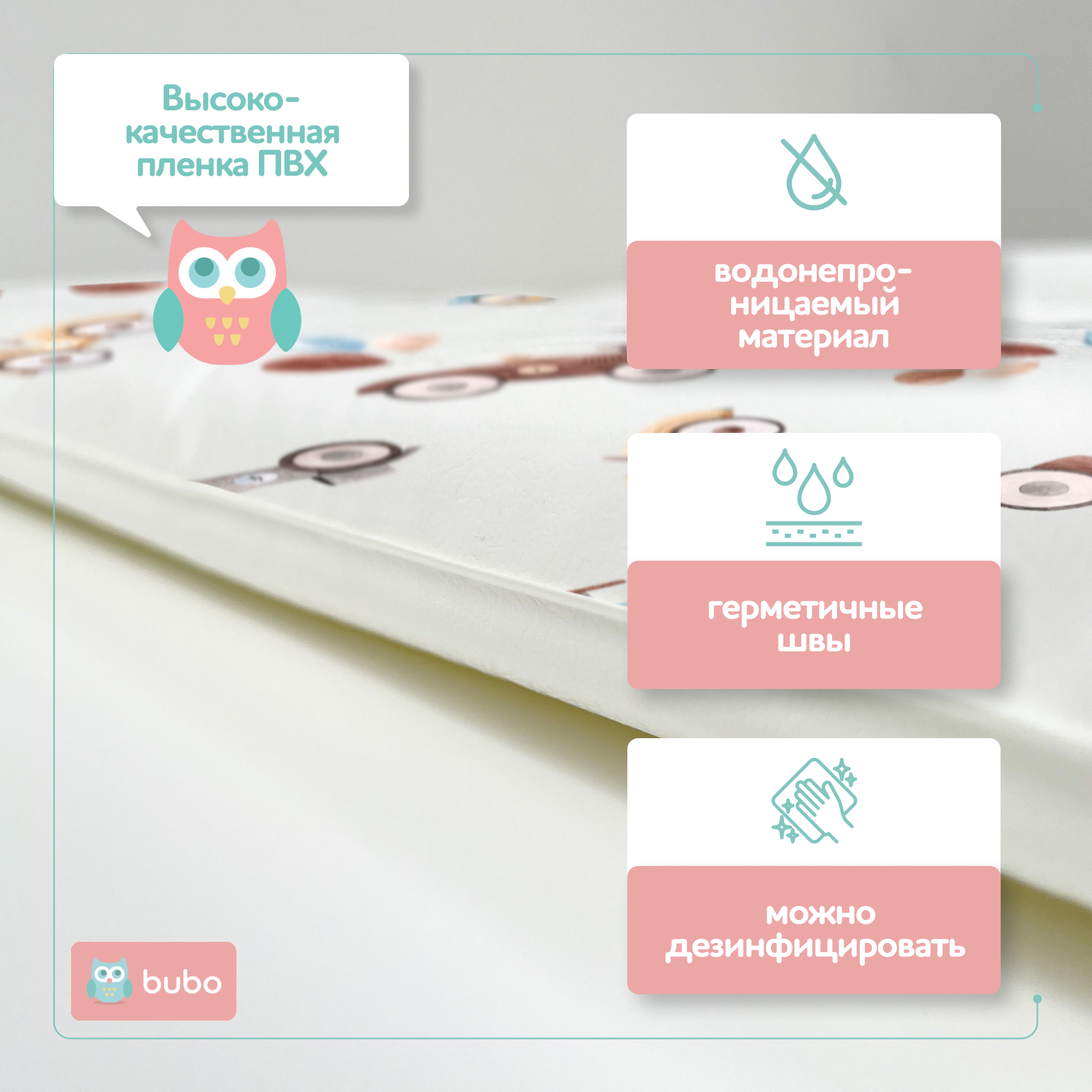 Пеленальный матрас BUBO BABY "SKY" не имеет тканных материалов и швейных швов. Герметичность изделия дает возможность быстро очистить и обработать изделие после использования, не требуется тратить драгоценное время на стирку и сушку матрасика. Это позволяет вам легко и быстро поддерживать чистоту и гигиену вокруг вашего малыша.