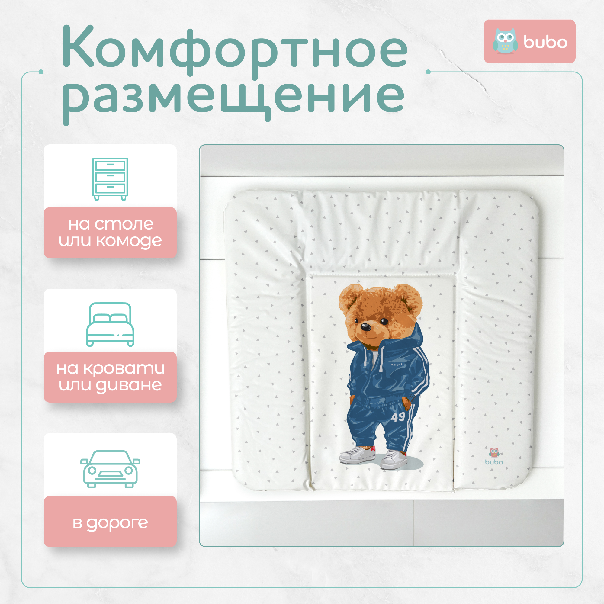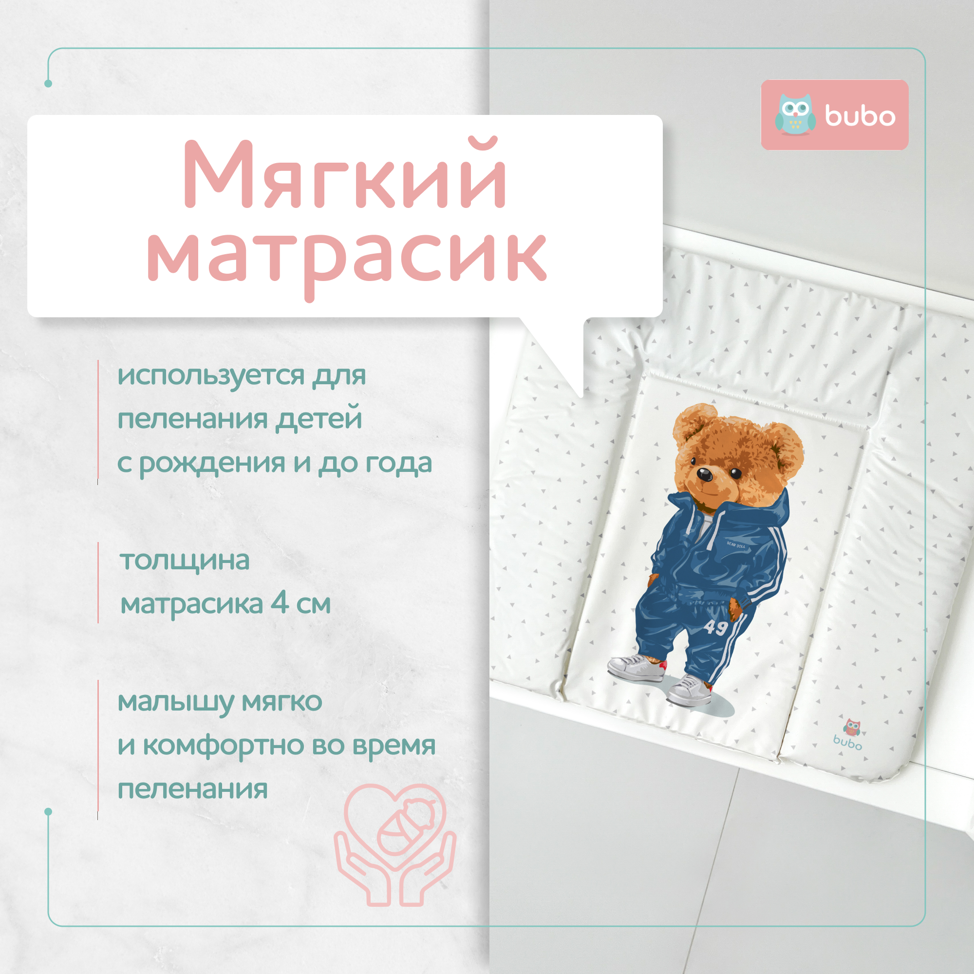 Матрас для пеленания BUBO BABY SKY 75x72 см - идеальное решение для комфортного и безопасного ухода за вашим малышом.