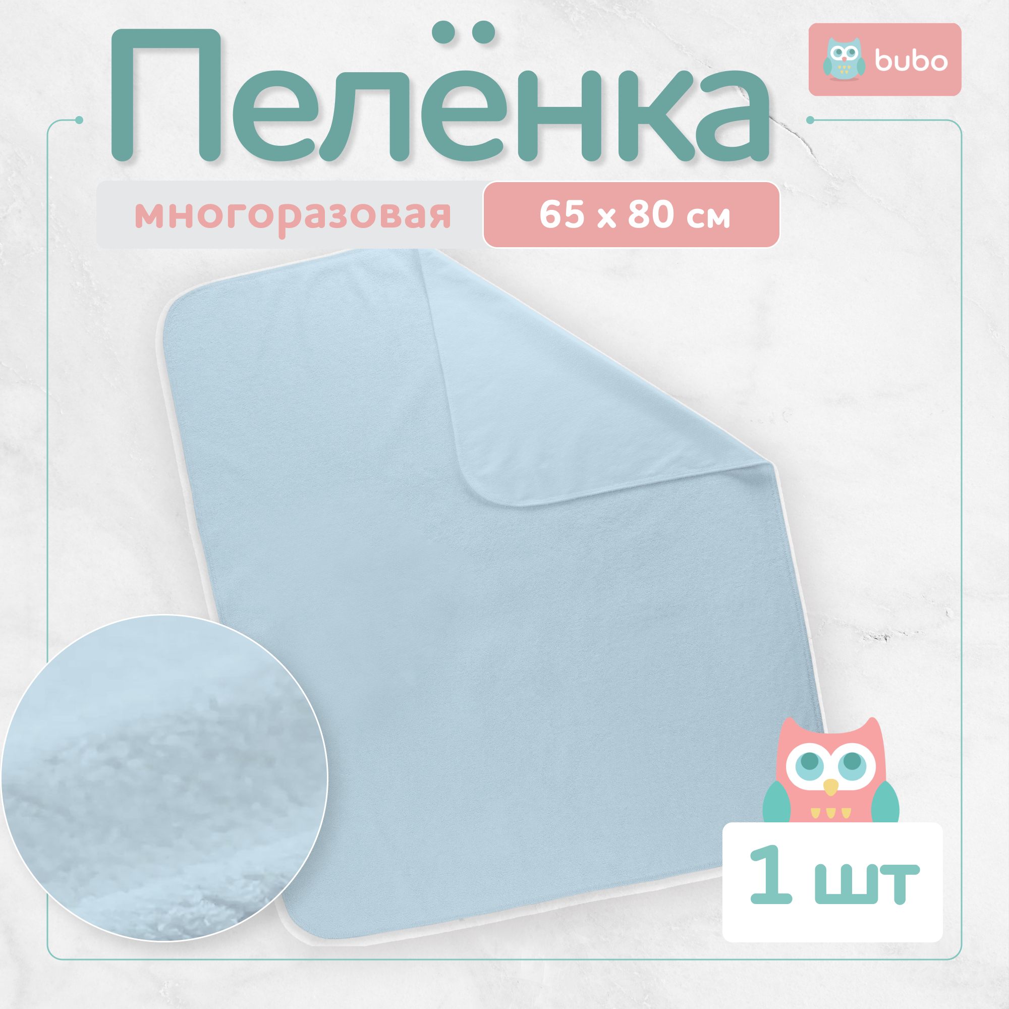 Пеленка непромокаемая многоразовая BUBO BABY "DRY" 65х80 см, мулетон, 1 шт